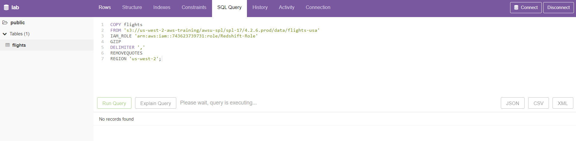 생성이 완료되면, 클라이언트에서 Redshift에 연결한다. 본문에서는 웹 기반의 PostgreSQL을 이용한다.