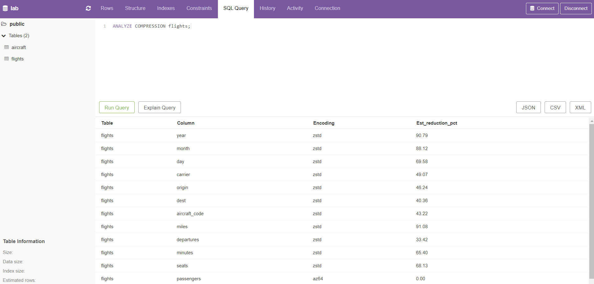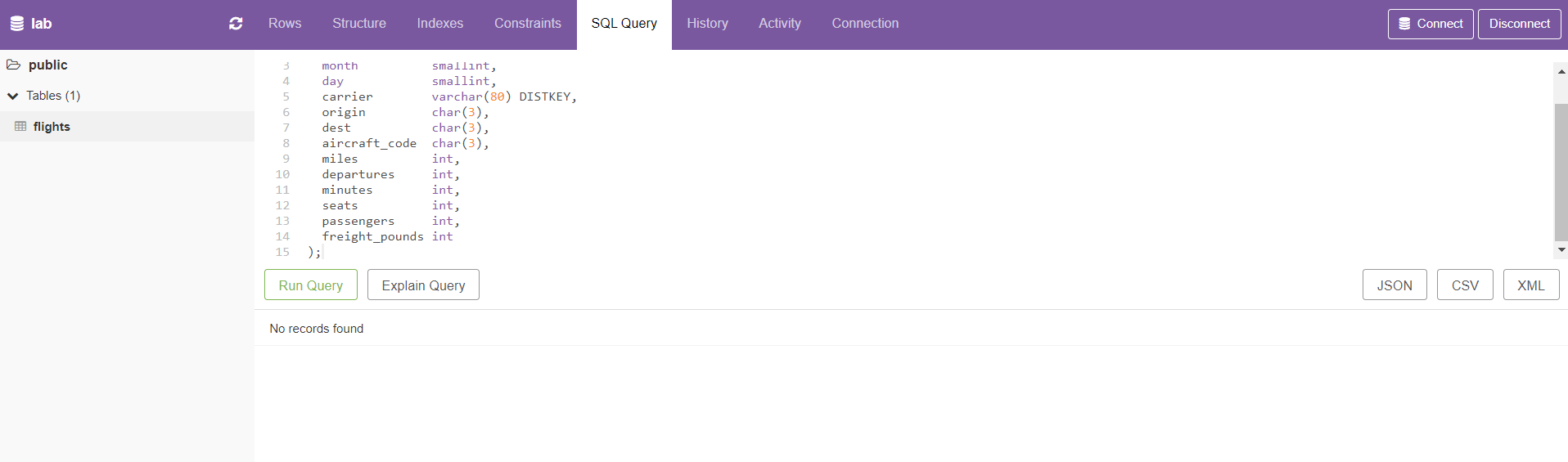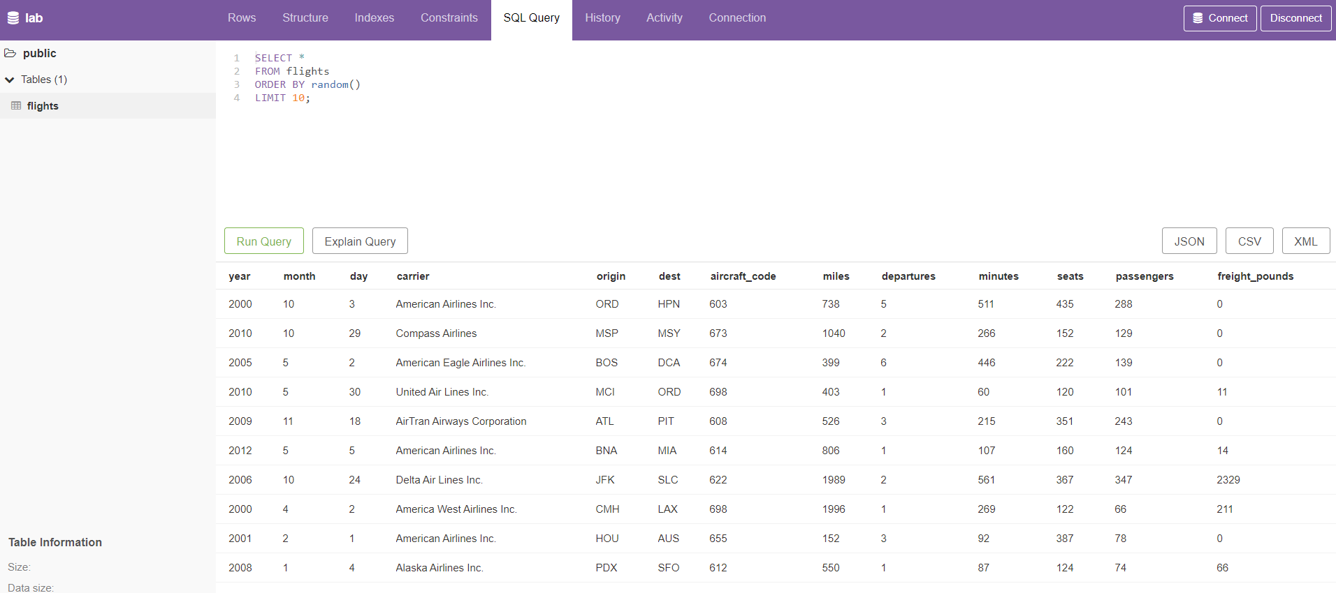 데이터 로드 후, 다음과 같이 쿼리를 실행하여 로드된 데이터를 확인할 수 있다.