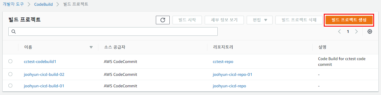 각 AWS 계정에서 빌드 프로젝트 이름은 고유해야 한다.