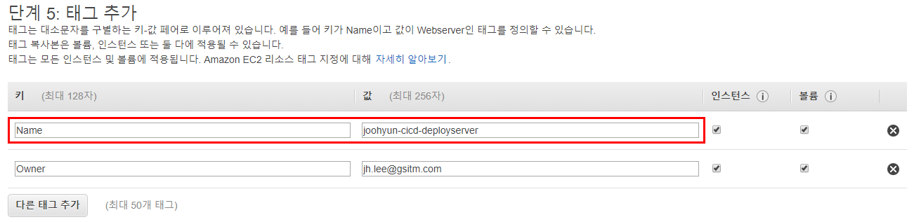 CodeDeploy에서 설정하기 위해 식별할 태그를 지정한다.
