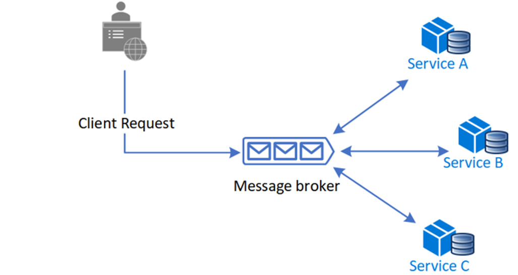 각 로컬 트랜잭션이 다른 서비스의 로컬 트랜잭션을 이벤트 트리거 하는 방식이다. 중앙 집중된 지점 없이 이벤트를 교환하며, 모든 서비스가 메시지 브로커를 통해 이벤트를 Publish/Response 한다.