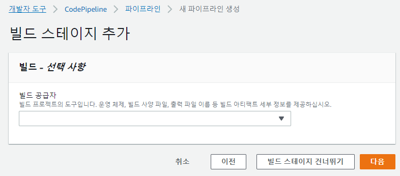 소스 스테이지 추가에서는 소스 파일을 업로드할 버킷을 입력한다.